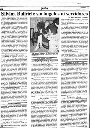 Silvina Bullrich: sin ángeles ni servidores [artículo] / Jorge Marchant Lazcano. La Segunda (Diario : Santiago, Chile)-- nov. 21, 1985, p. 20. retr. .
