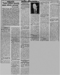 Teatro chileno necesita apoyo oficial y privado" : [entrevista] [artículo] / Emilio Bakit. La Segunda (Diario : Santiago, Chile)-- jul. 29, 1980, p. 23. retr. .
