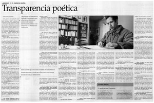 Transparencia poética: [entrevistas] [artículo] / Pedro Pablo Guerrero. El Mercurio (Diario : Santiago, Chile)-- sept. 14, 2002, p. 6-7 (suplemento "Revista de libros") retr. .