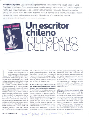 Un escritor chileno ciudadano del mundo (entrevista) [artículo] / Alejandra Miranda. Para tí (revista : Santiago, Chile)-- no. 62 (ene. 2011) p. 100.103. .