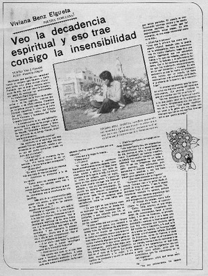 Veo la decadencia espiritual y eso trae consigo la insensibilidad (entrevista) [artículo] / Yair J. Carvajal. El Día (diario : La Serena, Chile)-- jul. 31, 1983, p. 3. .