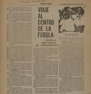 Viaje al centro de la fábula (entrevista) [artículo] / Margarita García Flores. Vanguardia Dominical (Revista : Bucaramanga, Colombia)-- oct. 17, 1971, p. 4. .