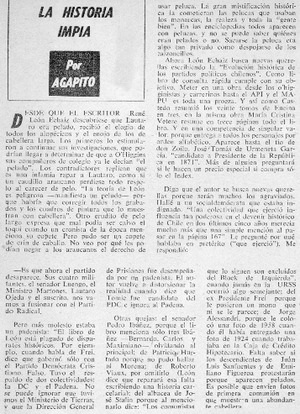 La historia impia [artículo] / Agapito. Clarín (Santiago, Chile)-- sept. 23, 1971, p. 5. .