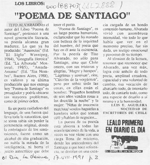 "Poema de Santiago" [artículo] / Luis E. Aguilera. El Día (diario : La Serena, Chile)-- ago. 17, 1991, p. 2. .