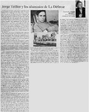 Jorhe Teillier y los aluminios de le défense [artículo] / P. Joaquín Alliende L. La Segunda (Diario : Santiago, Chile)-- mayo 8, 1996, p. 7. retr. .