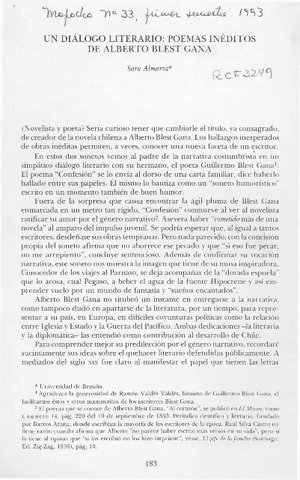Un diálogo literario, poemas inéditos de Alberto Blest Gana [artículo] Sara Almarza.