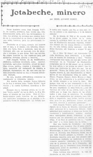 Jotabeche, minero [artículo] / Oriel Alvarez Gómez. Atacama (Copiapó, Chile)-- ago. 14, 1974, p. 13. .
