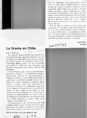La tiranía en Chile [artículo] / Galo Amat. Hoy. -- no. 547 (ene. 11, 1988) p. 59 .