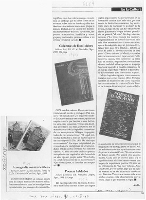 CLARO VALDES, SAMUEL - COLUMNAS DE DON ISIDORO, LAS - FONTAINE TALAVERA, ARTURO - González Rodríguez, Juan Pablo - ICONOGRAFIA MUSICAL CHILENA - LOI, ISIDORO - POEMAS HABLADOS - Peña F., Carmen - Quevedo Cifuentes, María Isabel
