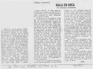 "Bala en boca" [artículo] / Apir. La Provincia. -- ene. 10, 1984, p. 3. .