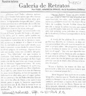 Galería de retratos [artículo] / Fidel Araneda Bravo. Las Últimas Noticias (Diario : Santiago, Chile)-- dic. 16, 1979, p. 5. .