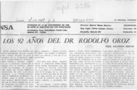 Los 92 años del Dr. Rodolfo Oroz [artículo] Fidel Araneda Bravo.