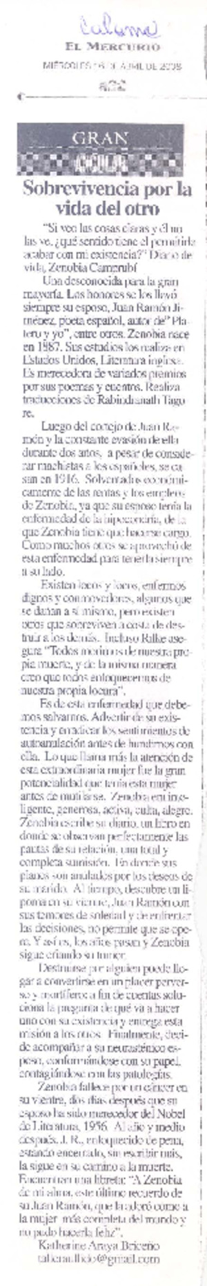 Sección Referencias Críticas. Camprubí, Zenobia, 2008