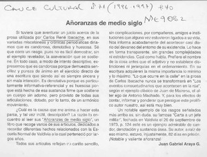 Añoranzas de medio siglo [artículo] / Juan Gabriel Araya G. Cauce Cultural. -- no. 71 (1996-1997) .p 40 .