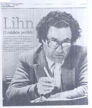 Lihn el eslabón perdido [artículo] / Paz Arrese. La Tercera (Diario: Santiago, Chile) ene. 26, 2008, p. 4-5 (suplemento) .