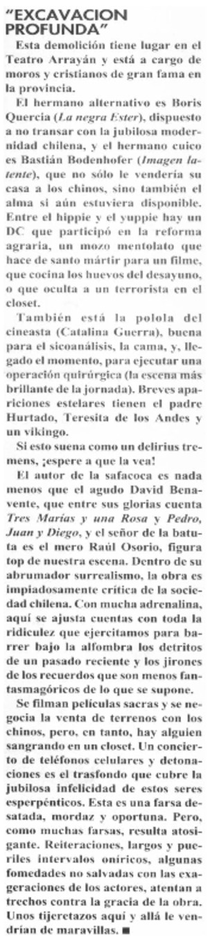 "Excavación profunda" [artículo] / As. Caras. -- no. 148 (dic. 15, 1993) p. 57 .