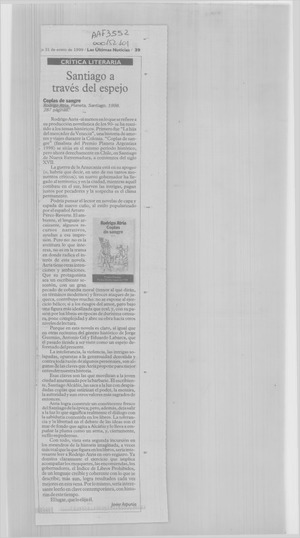 Santiago a través del espejo [artículo] / Javier Aspurúa. Las Últimas Noticias (Diario : Santiago, Chile)-- ene. 31, 1999, p. 39 il. .