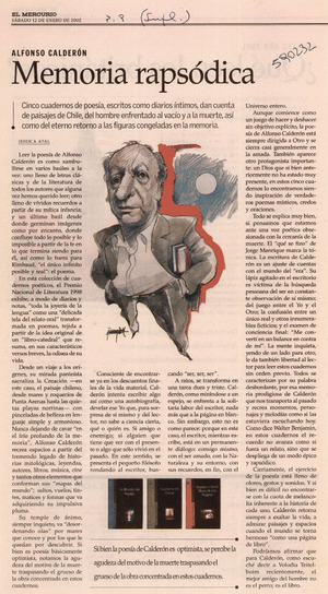 Memoria rapsódica [artículo] Jessica Atal El Mercurio (Santiago) ene. 12, 2002, p. 9 (suplemento) retr. .