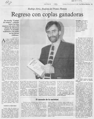 Regreso con coplas ganadoras [artículo] / Angélica Rivera F. Las Últimas Noticias (Diario : Santiago, Chile)-- dic. 20, 1998, p. 41 retr. .