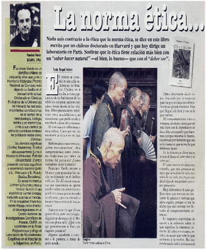 La norma ética -- [artículo] / Raquel Azócar. La Nación. -- sept. 22, 1996, p. 20-21 (suplemento) retr. .