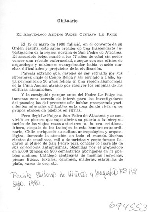 Sección Referencias Críticas. Le Paige, Gustave 1980.