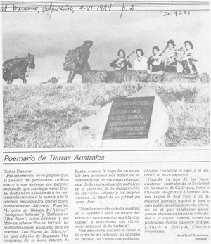 Poemario de tierras australes [artículo] / José Raúl Barrientos. El Mercurio (Valparaíso). -- jun. 4, 1984, p. 2. .