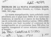 Testigos de la nueva Evangelización [artículo] / Jorge Barros B. La Revista Católica. -- no. 1080 (oct. dic. 1988) p. 437-438 il. .