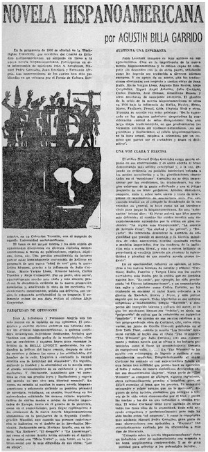 Novela hispanoamericana [artículo] / Agustin Billa Garrido. Diario Ilustrado (Santiago, Chile)-- jun. 2, 1968, p. 18. .