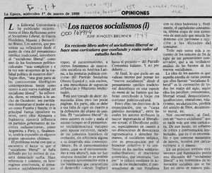 Los nuevos socialismos [artículo] / José Joaquín Brunner. La Epoca. -- mar. 1, 1989, p. 7 (I parte) La Epoca. -- mar. 2, 1989, p. 7 (II parte) .
