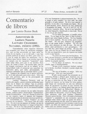 Autorretrato de Lautaro Nazario [artículo] / Loreto Bustos Beeck. Impactos. -- nov. 1993, p. 2 (suplemento) .