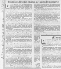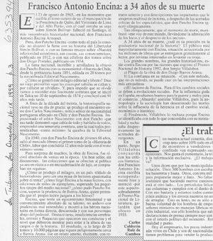 Francisco Antonio Encina, a 34 años de su muerte [artículo] Carlos Calderón Ruiz de Gamboa La Tribuna (Los Ángeles) sept. 16, 1999, p. 3 .