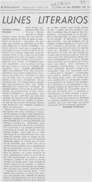Lunes literarios [artículo] / Antonio Campaña. La Discusión (Chillán, Chile)-- ene. 24, 1972, p. 3. .