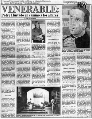 Venerable, Padre Hurtado en camino a los altares [artículo] / Juan Carlos Camus. La Tercera. -- feb. 17, 1991, p. 39 retr. .