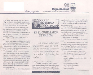 En el cumpleaños de Volodia [artículo]/ María Canihuante. El Mercurio (diario: Antofagasta, Chile) mar. 21, 2008, p. a21 .
