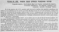 Para que otros puedan vivir. [artículo] / Antonio Cárdenas Tabies. La Región (San Fernando, Chile)-- jun. 3, 1975, p. 3. .