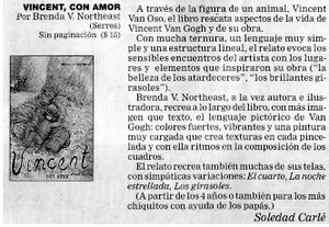 Vincent, con amor [artículo] / Soledad Carlé. La Nación (Buenos Aires, Argentina)-- abr. 23, 2000, p. 15. il. .