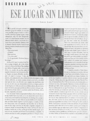 Ese lugar sin limites [artículo] / Carlos Cerda. Qué Pasa. -- no. 1340 (dic. 14, 1996) p. 105-106 retr. .