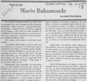 Mario Bahamonde [artículo] / Martín Cerda Las Últimas Noticias (Diario : Santiago, Chile)-- jun. 24, 1979, p. 5. .