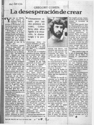La desesperación de crear [artículo] / C. D. T. Análisis. -- no. 214 (feb. 15, 1988) p. 50 retr. .