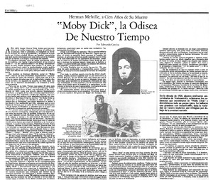 "Moby Dick", la Odisea de nuestro tiempo Herman Melville, a cien años de su muerte [artículo] : Edmundo Concha. El Mercurio (Santiago, Chile)-- dic. 15, 1991, p. E16. retr. .
