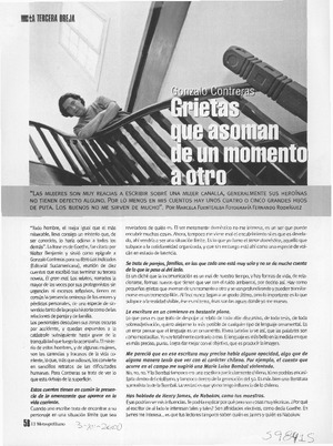 Grietas que asoman de un momento a otro [artículo] Marcela Fuentealba El Metropolitano (Santiago) dic. 3, 2000, p. 58-59 (suplemento) retr. .