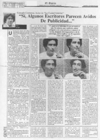 "Sí, algunos escritores parecen ávidos de publicidad -- " [artículo] / F. V. D. El Diario. -- ene. 21, 1992, p. 24 retr. .