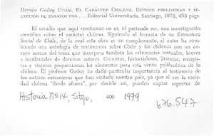 Autores chilenos - Carácter chileno - Godoy, Hernán