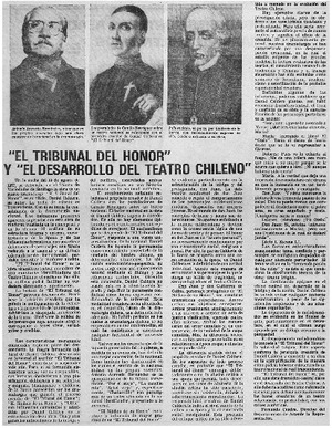 El tribunal del honor", y "el desarrollo del teatro chileno" [artículo] Fernando Cuadra.