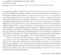 "La fronda aristocrática en Chile [artículo] / Juan de Luigi Lemus. Atenea. -- no. 450 (segundo semestre 1984) p. 247 .