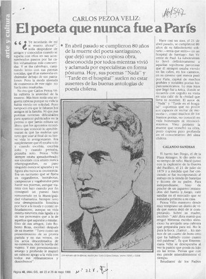El poeta que nunca fue a París [artículo] / Carolina Díaz T. Análisis. -- no. 228 (mayo 23, 1988) p. 48-49 il. .