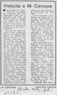Felicita a M. Cánepa [artículo] / Armando Díaz Jaña. La Segunda (Diario : Santiago, Chile)-- abr. 28, 1977, p. 8. .
