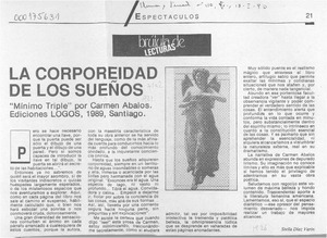 La corporeidad de los sueños [artículo] / Stella Díaz Varin. Pluma y Pincel. -- no. 110 (ene. 18, 1990) p. 21 retr. .