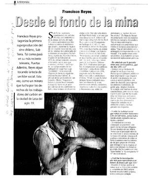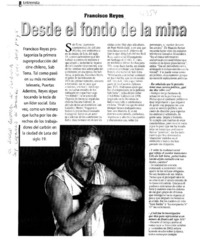 Desde el fondo de la mina : [artículo] / Sebastián Domínguez. El Diario Austral de Valdivia (Diario : Valdivia, Chile)-- oct. 5, 2003, p. 4-5 (suplemento "Crónica de Domingo") retr. .