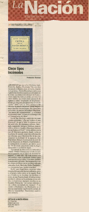 Cinco tipos incómodos [artículo] / Fernanda Donoso. La Nación (Diario : Santiago, Chile)-- feb. 23, 2009, p. 32. .